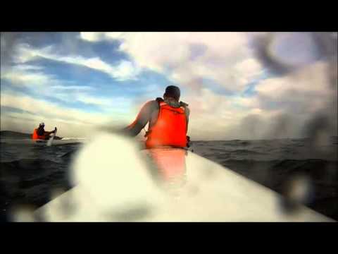 Although Francisco was generally ahead of me during this stretch, I'd occasionally catch a wave just right and ever-so-briefly take the lead. As we neared the final point before the beach, however, I slid back, fingernails clawing at the cliff's edge to maintain contact. Heading in towards the beach I was trailing by a couple of boat lengths.